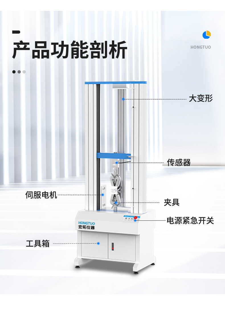 塑料雙臂電子拉力機(jī)HT-140SC具有更寬廣準(zhǔn)確的加載速度和測力范圍,對載荷、變形、位移的測量和控制有更高的精度和靈敏度,具有應(yīng)力-應(yīng)變、力量-位移、力量-時間、強(qiáng)度-時間等模式功能;可求出大力值、抗拉強(qiáng)度、彎曲強(qiáng)度、壓縮強(qiáng)度、彈性模量、斷裂延伸率、屈服強(qiáng)度等參數(shù),適用于拉伸、壓縮、剝離、撕裂、剪切…等力學(xué)性能試驗(yàn)及分析。